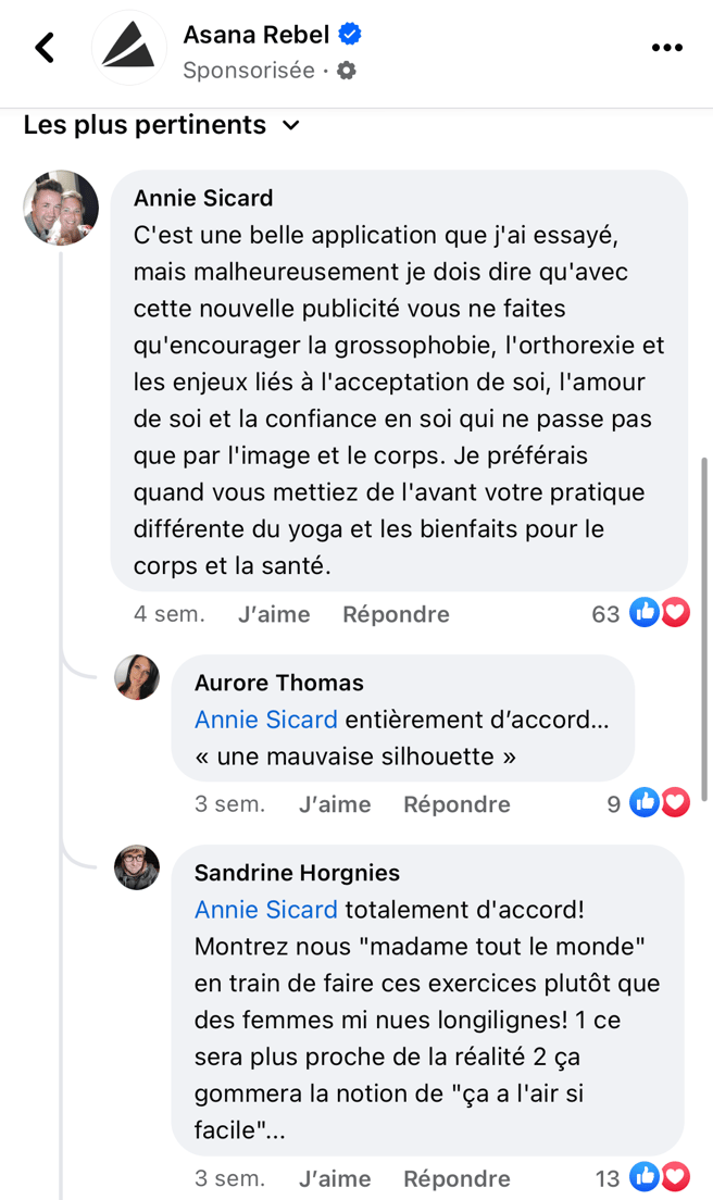 Ce n’est qu’un (triste) extrait des mots utilisés par cette application bien-être. J’avais peu d’espoir en me tournant vers les commentaires (il faut dire que sur Facebook, ils sont rarement joyeux …), et pourtant, j’ai été agréablement surprise de voir que les gens ne sont plus dupes. Ils en ont marre, ils sont conscients que l’on peut faire les choses différemment et ils ne se gênent pas pour le dire.